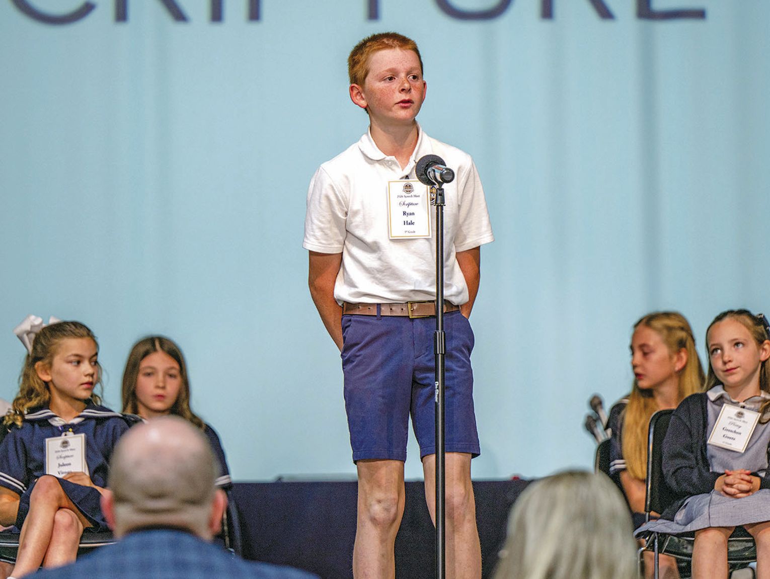 BOERNE — More than 160 students competed in the Geneva School of Boerne Grammar School Speech Meet this year, with 28 advancing to the finals. The Speech Meet features students in first through fifth grades choosing either a selection from scripture or poetry to present at the competition.